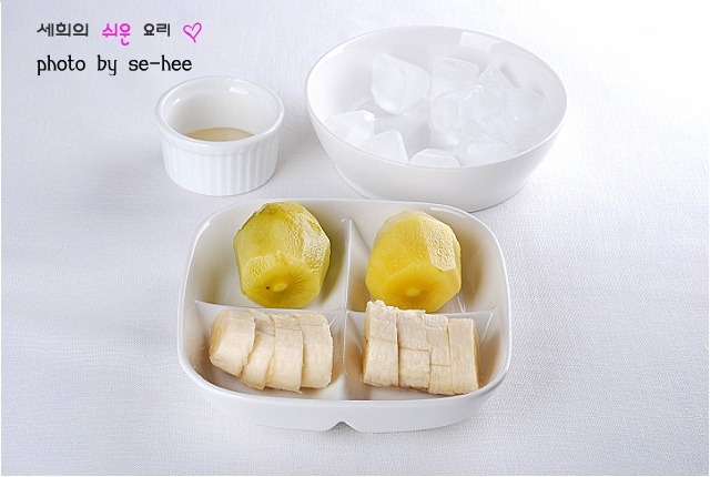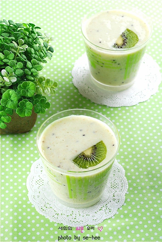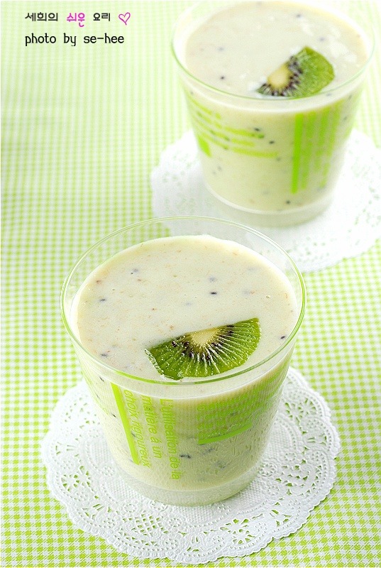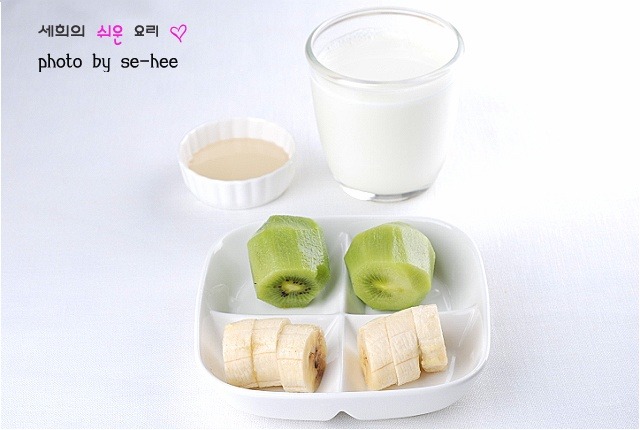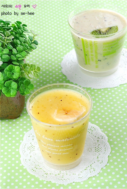 키위바나나쉐이크:키위 2개,바나나 1개,우유 1컵,꿀(2)밥숟가락