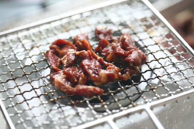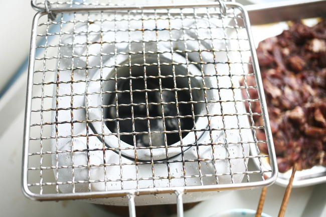 숯이 없어 바비큐용 차콜에 불을 붙이고 화로에 넣어 고기를 굽는 방식이지요.
