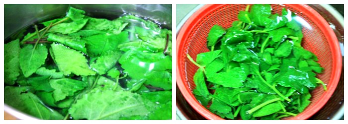 물이 팔팔 끓을 때 천일염 1 큰 술 넣고 살짝 데쳐서