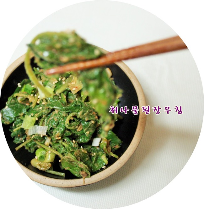 맛있는 집 된장으로 짜지 않게 무쳐놓으면