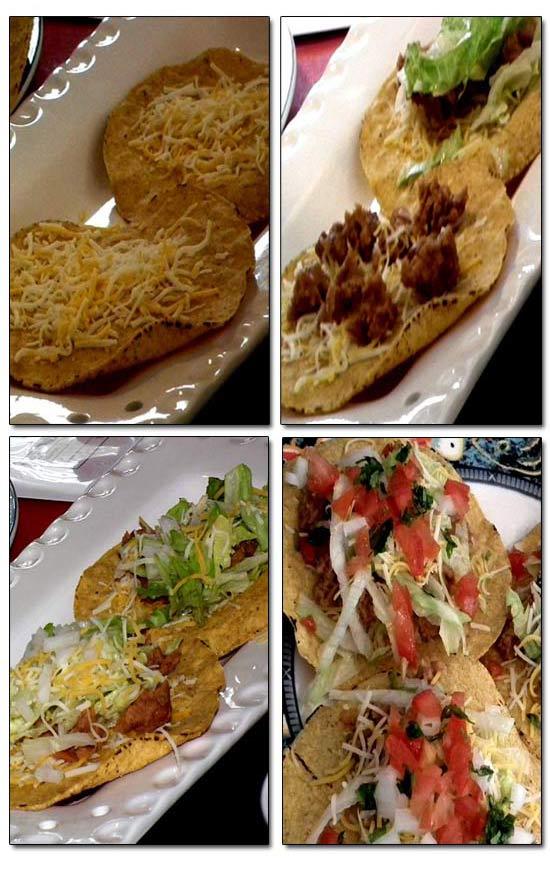샌드위치와 비슷해서 작은 파티를 하거나 조금 식구가 많이 모이면 토르티야를 튀려서 커다란 쟁반에 내고 살사나 구아카몰은 움푹한 그릇에 담고 고기와 야채는 커다란 볼에 담아 자기 취향에 따라 얹어 먹도록 하기도 한다.