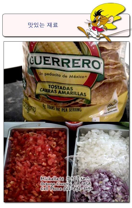멕시칸 마켓에 가면 튀겨 놓은 토스타다(Tostada)를 판다. 튀기는 과정이 귀찮으시면 마켓에서 직접사서 써도 상관없다.