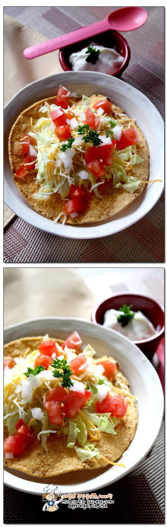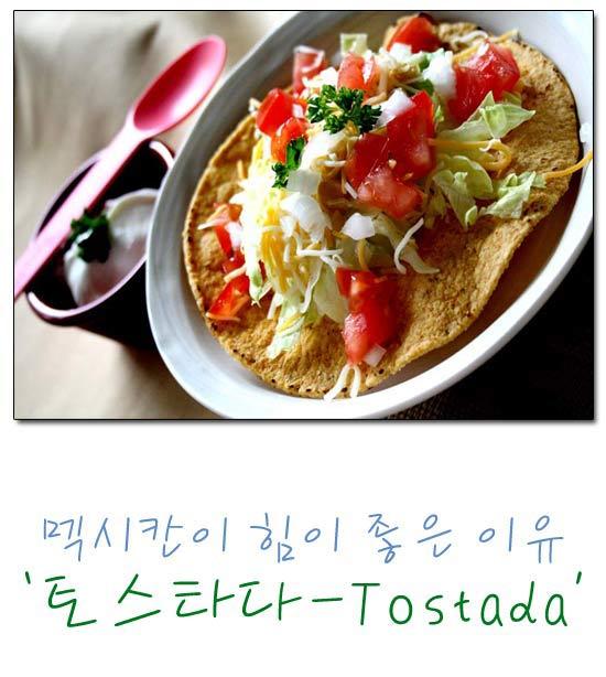 또 이렇게 토르티야(Tortilla)를 통째로 튀겨서 그 위에 팥이나 구아카몰 혹은 고기, 야채를 얹으면 토스타다(Tostada)라고 하는데 사실 위에 얹는 재료는 그렇게 구애를 받지 않는다.