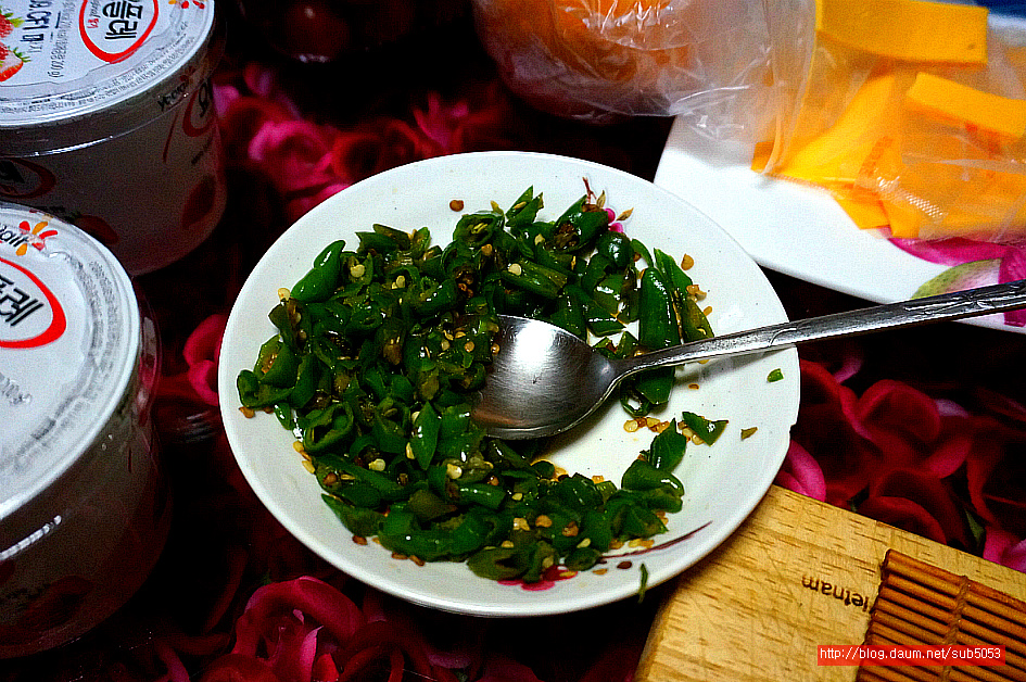 작은 꼬맹이가 청양고추와 참치,치즈를 넣어달라는 요청을 해서.....