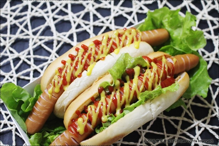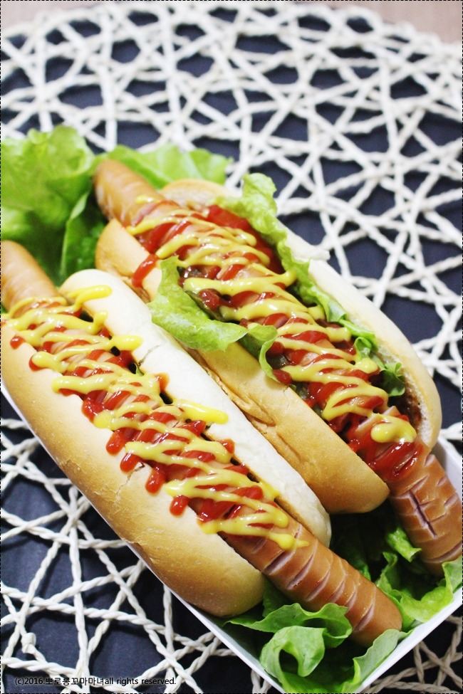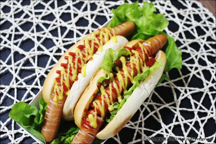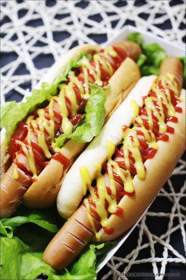 핫도그 빵에 비해 ㅎㅎ 소세지가 길어요