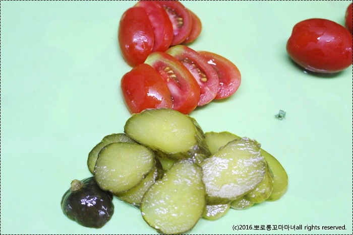 방울토마토와 피클은 슬라이스 해놓고~