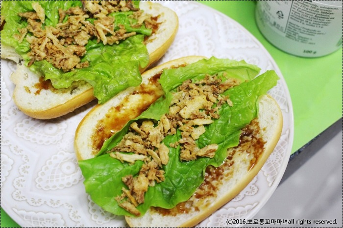 이케아에서 사온 양파튀김을 살짝 넉넉하게 넣어줬어요.