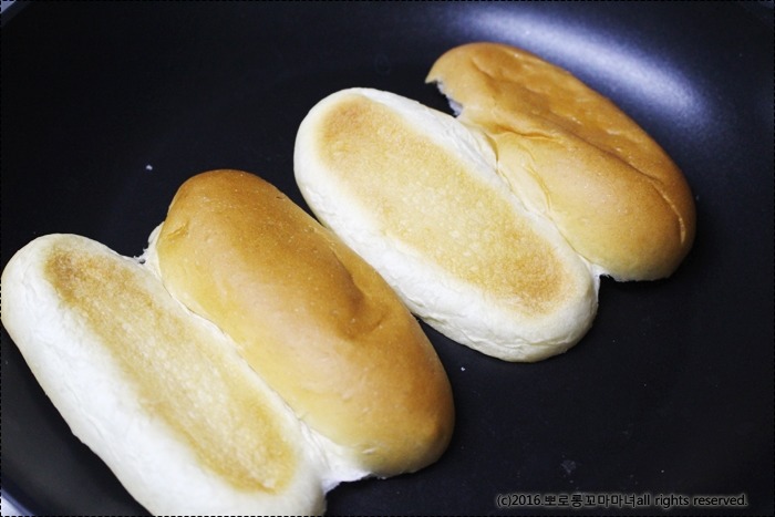 핫도그빵은 앞뒤로 살짝 바삭하게 구워주세요.