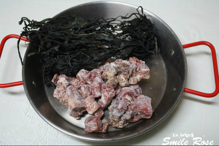 소고기는 냉동실에 얼려놓은 것을 꺼내고 미역도 조금 준비했어요~~~