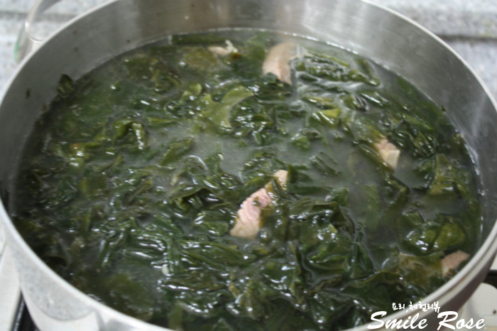 조금 오래 끓였더니 미역국이 곰국처럼 뽀얗게 잘 끓여졌네요~~~