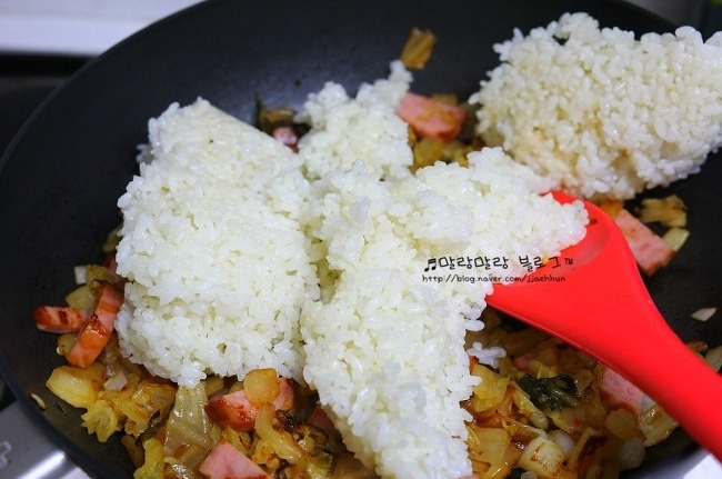 역시나 흰밥으로해야 제맛이지요/ 볶은 후에 치즈 를 넣어주면 끝!