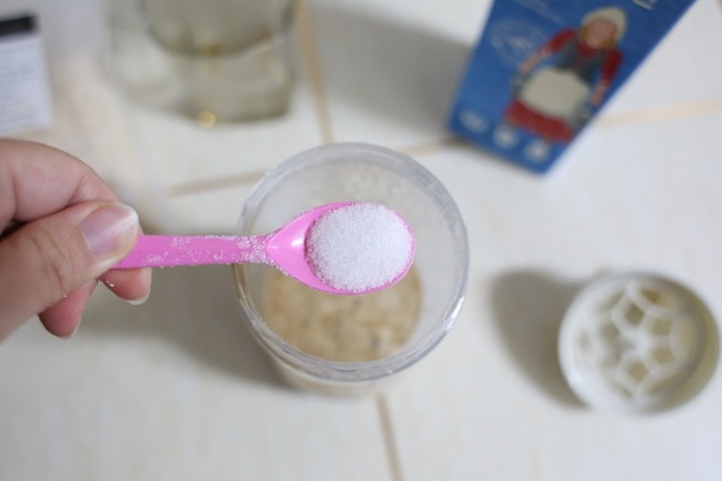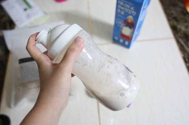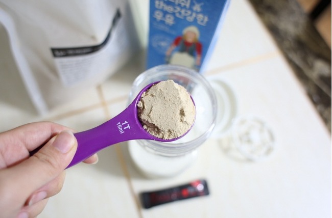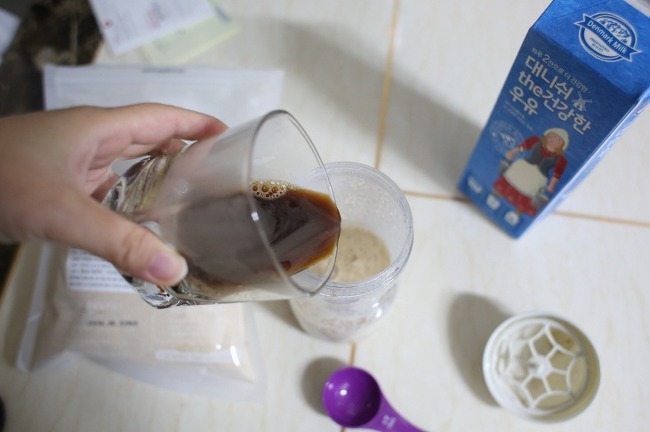 미숫가루가 우유와 잘 섞이도록 흔들어주세요.