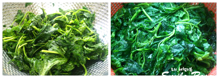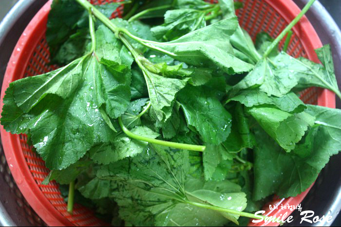 아욱은 깨끗이 씻어 건져 놓았어요~!~