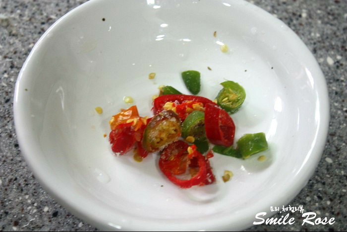 한소끔 끓어 오르기 시작할 때 청양고추 썰어놓은 것을 넣어주었어요~~~