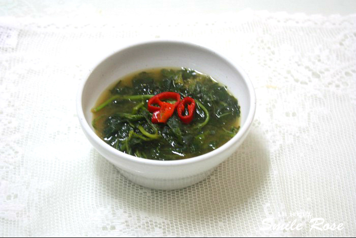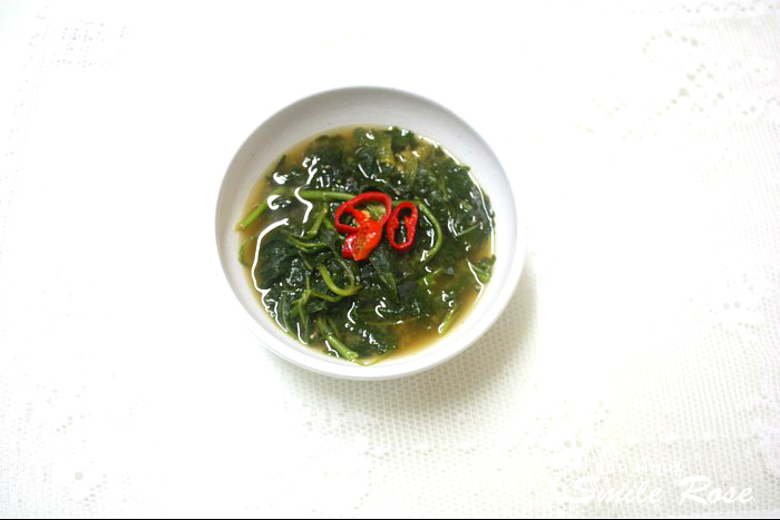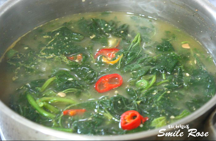 아욱350g 청양고추1큰술 육수(솔치6마리+다시마한쪽)1200ml