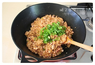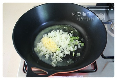 그리고 쏭쏭 썬 대파 초록부분 1/2대를 넣고 살짝 볶아주세요.