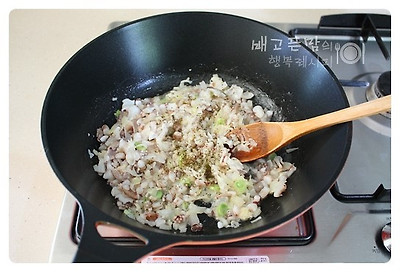 냉동실에 있던 오징어 다리 다져 넣고 휘리릭~ 볶아 주니