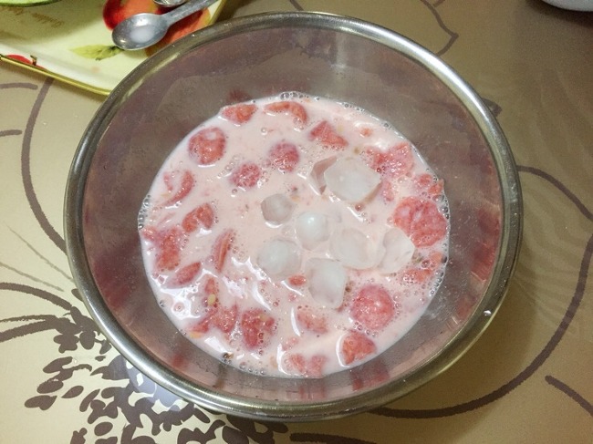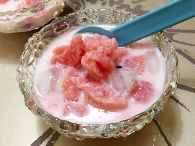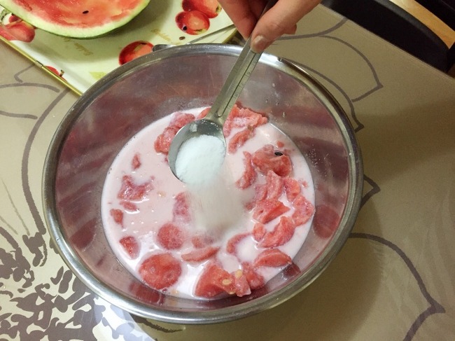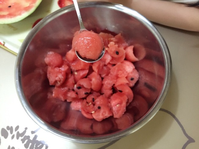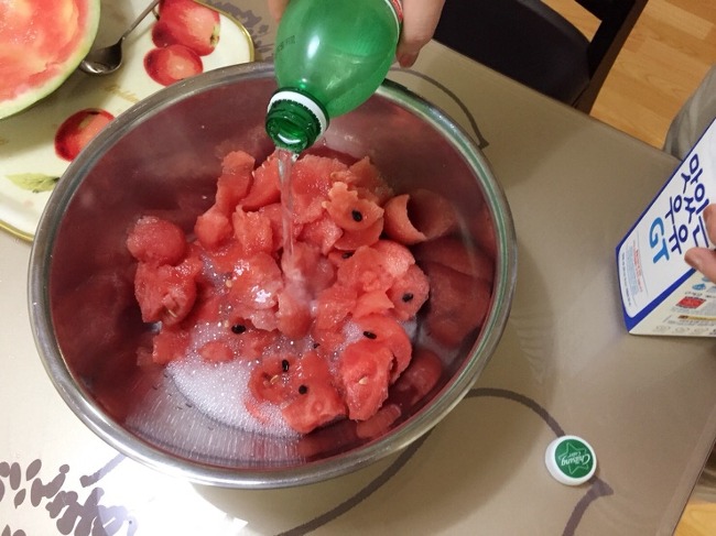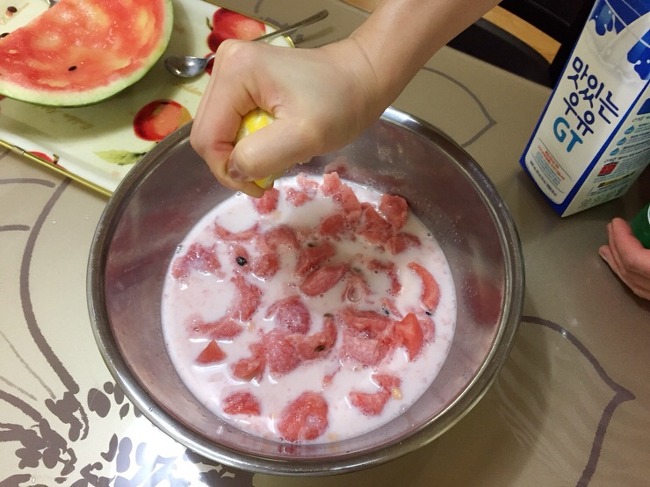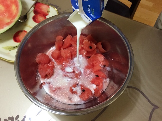 1. 수박 속을 먹기 좋은 크기로 파냄
