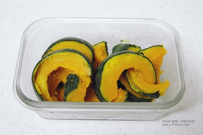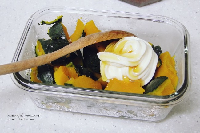 저녁에 출출할때 간식으로 먹으려고 쪄두었던 미니 단호박이 냉장고에 있어 만들어봤어요.