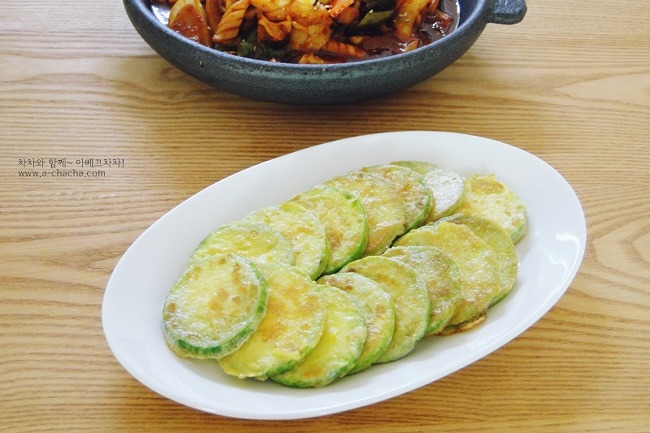 그리고 남은 1/3 쪽 애호박은 바로 애호박전을 만들어줬어요.