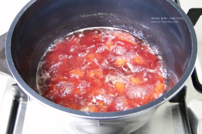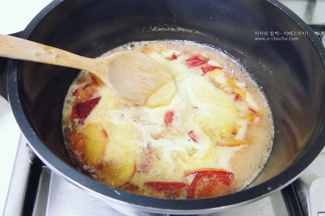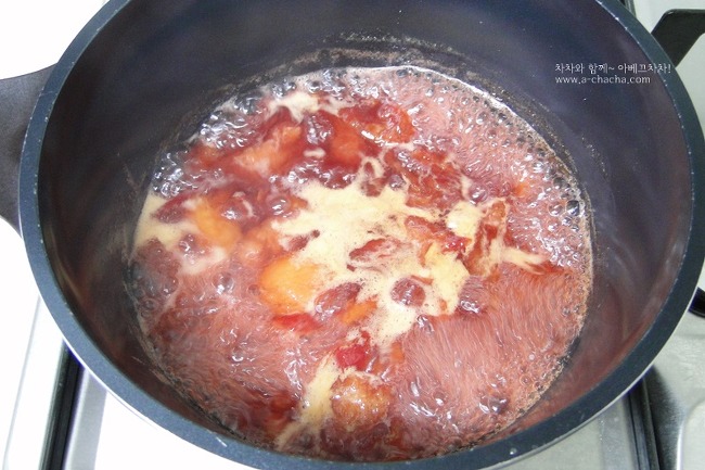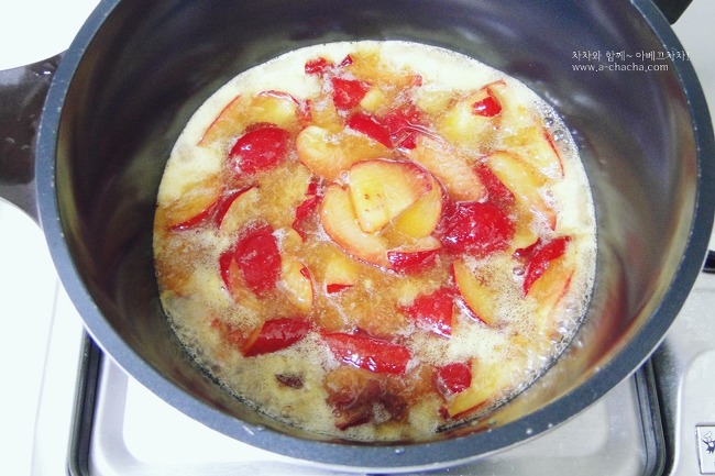 자두에서 수분이 나오면 중불에서 한소끔 끓이다가