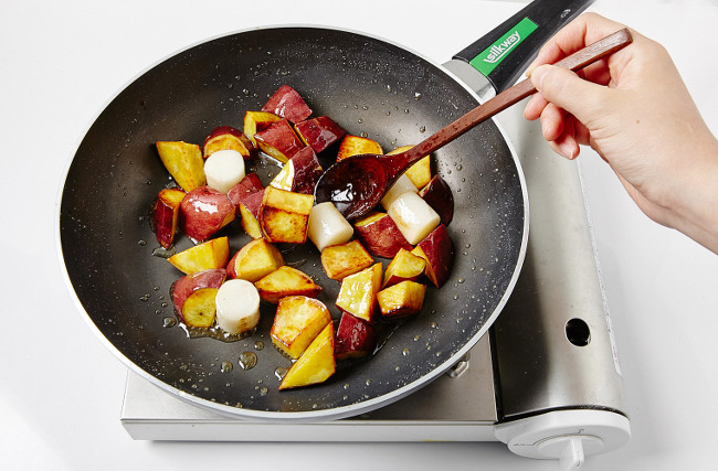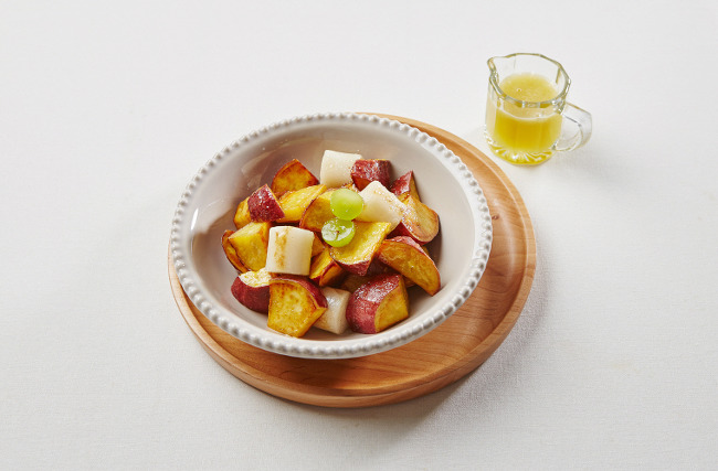 #. 많은양을 조리할땐 고구마의 전분을 헹군뒤 사용해야 색이 빨리 돌지않습니다.