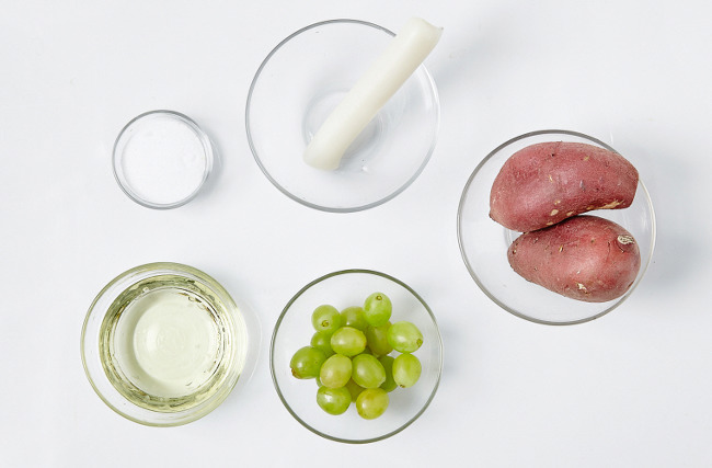 청포도 (1컵 150g) , 고구마 2개 , 가래떡 1줄 , 설탕 3T , 식용유 1컵