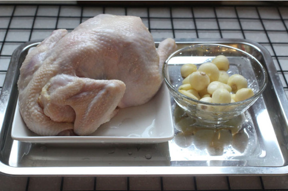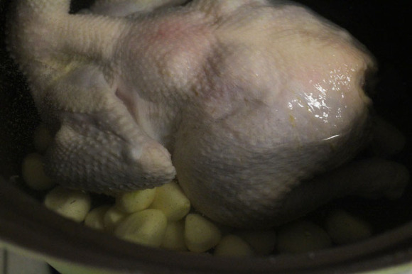 01. 냄비에 달과 통마늘을 넣고 닭이 잠길정도로 물을