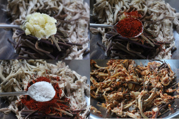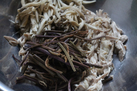 04. 볼에 잘찢어준 닭고기살과 데쳐준 고사리와