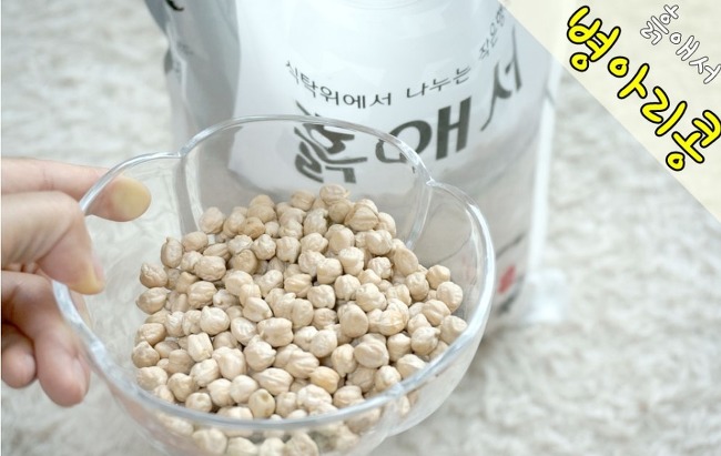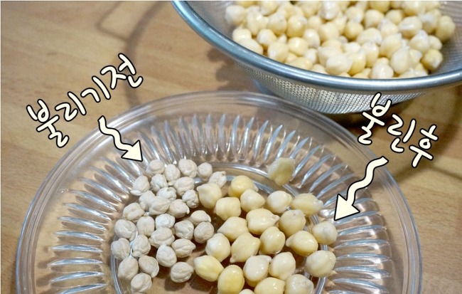 ① 물에 병아리콩을 5시간 전후로 충분히 불려줄 것!