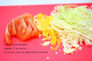 양배추를 담고 파프리카와 토마토도 올려주세요