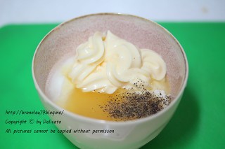 시판 플레인 요구르트 1개에 마요네즈 1.5, 꿀 0.5, 레몬즙조금, 소금, 후추를 넣어서