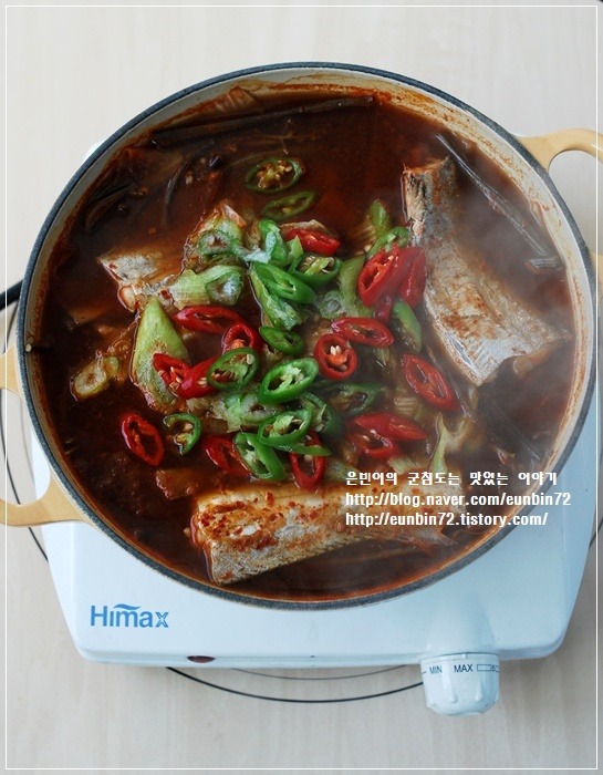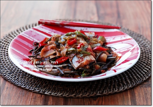 보통의 경우 두툼하게 썬 무를 깔고 칼칼하니 조려내는경우가 많죠
