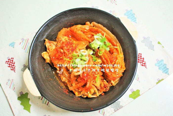 묵은지 김치를 손으로 쭉쭉 찢어서 밥 위에 올려놓은 다음 먹으면 꿀맛이지요~~~
