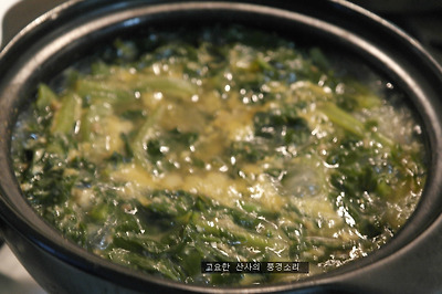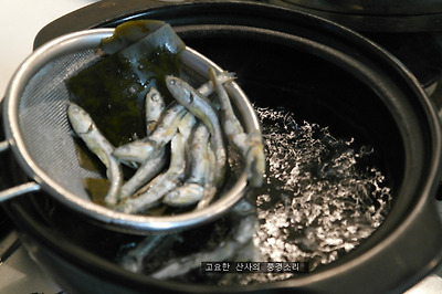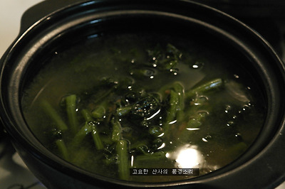 ㉠ 멸치 육수를 내고 먹기 좋게 썰은 열무와 된장을 넣어준다.