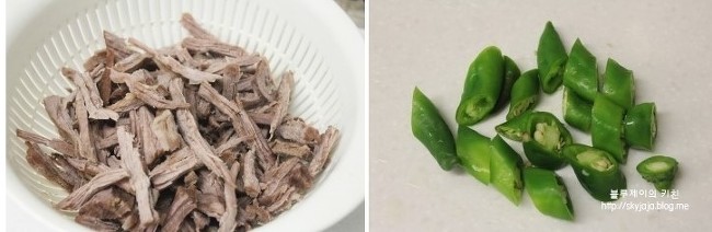 한 김 식힌 뒤 결대로 쭉쭉 찢고,