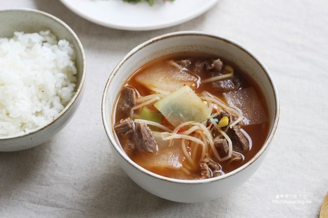 소고기는 찬물에 10여분 담궈 핏물을 빼주고..