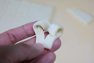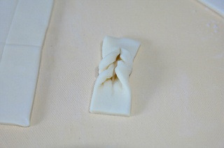 한쪽을 가운데 칼집안에 넣어 꼬아줍니다.