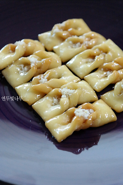똑같은 밀가루이지만 매작과는 칼국수나 만두처럼 반죽할 때 치대면 안된답니다.