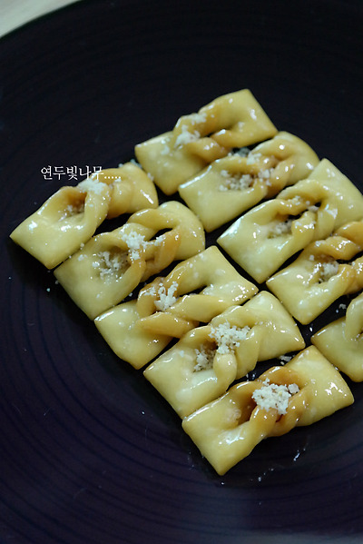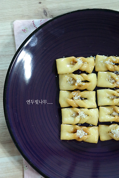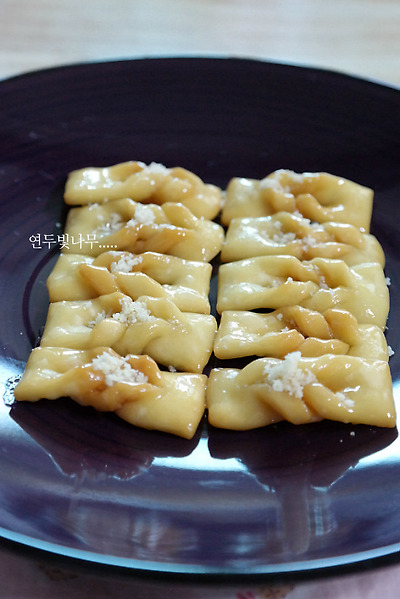 오늘은 밀가루 반죽으로 만드는 후식인 매작과를 만들어볼께요.