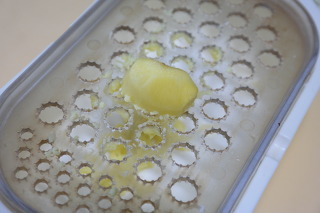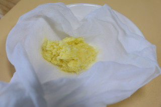 생강은 강판에 갈아 면보에 넣고 즙을 짜줍니다.