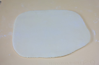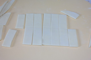 매작과 반죽을 덧밀가루 조금 뿌리고 2 * 5 * 0.3cm크기 10개는 나올수 있게 방망이로 넙적하게 늘여줍니다.
