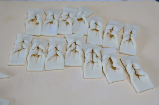 2. 매작과 모양은 중앙에 3군데 칼집을 넣으시오.