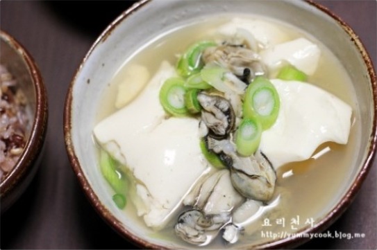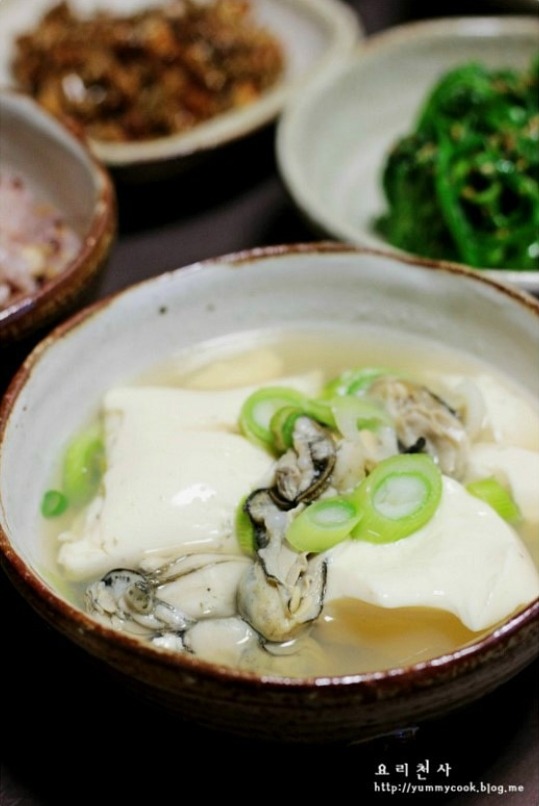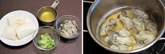 순두부 1봉, 굴 100g, 다시마물 1컵, 대파 1/2대 , 청주 1큰술, 소금 약간