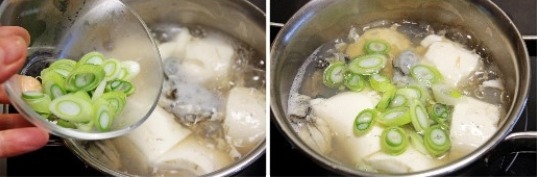 다시마물를 불에 올려 끓으면 굴을 넣고 살짝 끓여준다