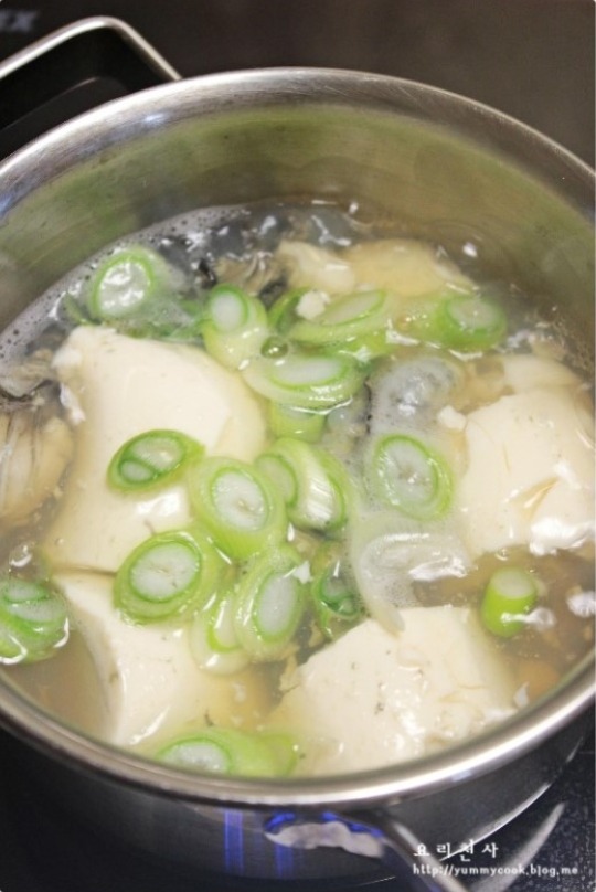 끓는 다시마물에 순두부를 잘라 넣고 한소끔 끓여준다
