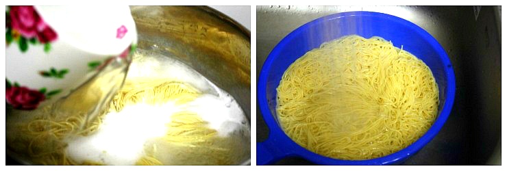 소면이 한번 끓어오르면 냉수를 부어주면서 2번 끓여줍니다~!~