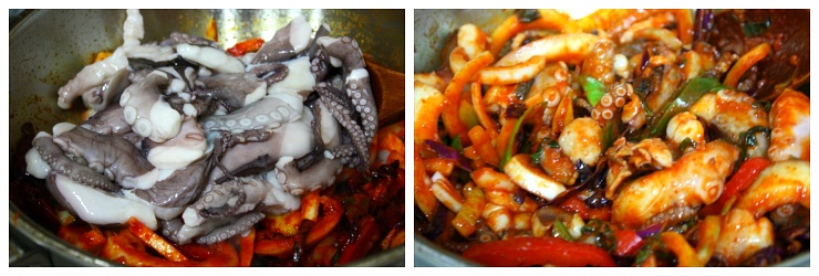 마지막에 썰어놓은 낙지를 넣고 볶아줍니다~!~