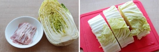배추 중간크기 1/4포기, 베이컨 10장 (100g정도), 마늘 2쪽,