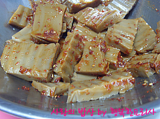 4. 3의 양념1/2을 묵에 넣어 살살 무친 다음